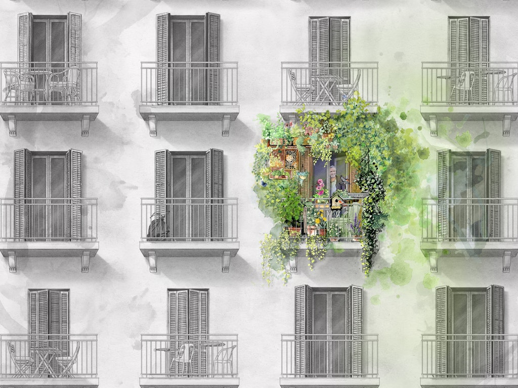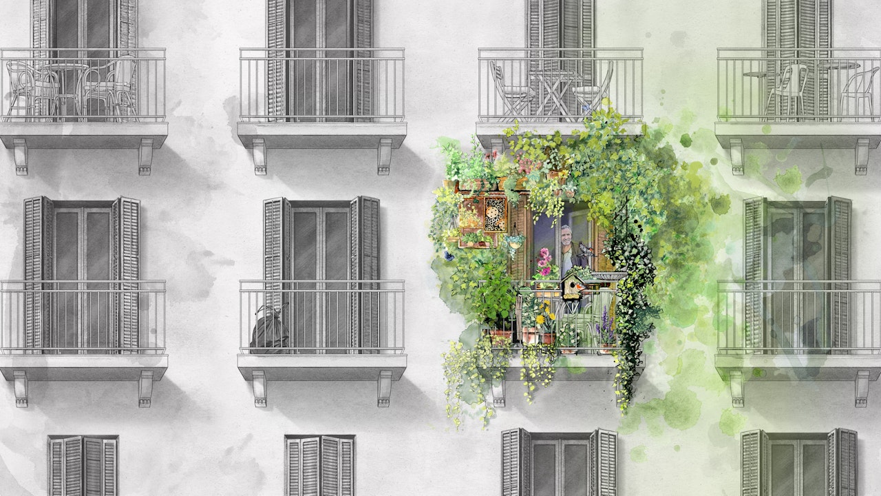 Mit Wasserstellen für Insekten, bepflanzten Balkonen und begrünten Fenstersimsen.