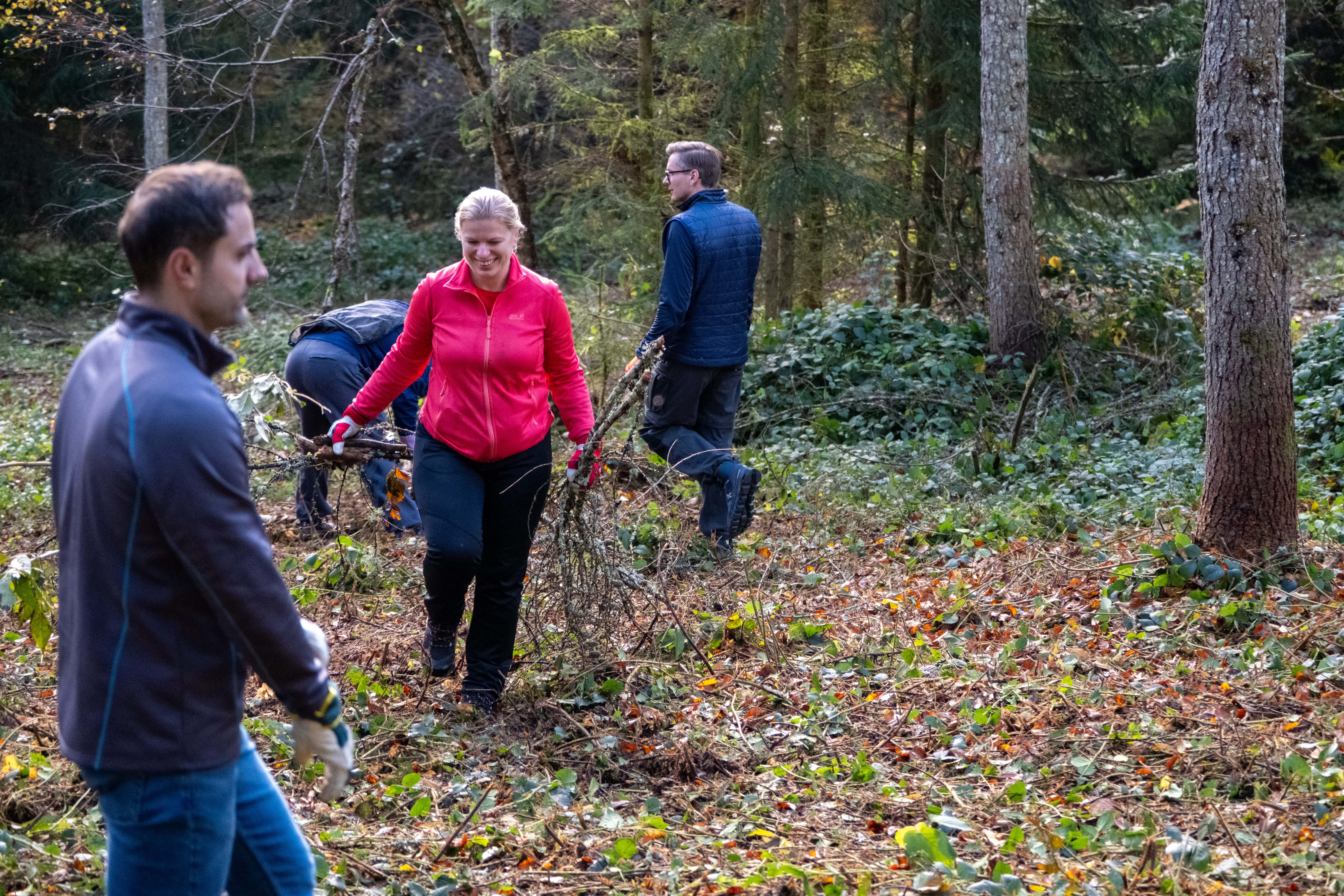 Damit Bäume Sauerstoff produzieren und CO₂ binden können, müssen sie gesund sein und ausreichend Licht zum Wachsen erhalten. Um diesen natürlichen Prozess zu unterstützen, werden unsere Schweizer Wälder und Bachufer regelmässig gepflegt – dazu gehört auch das Entfernen invasiver Pflanzenarten.