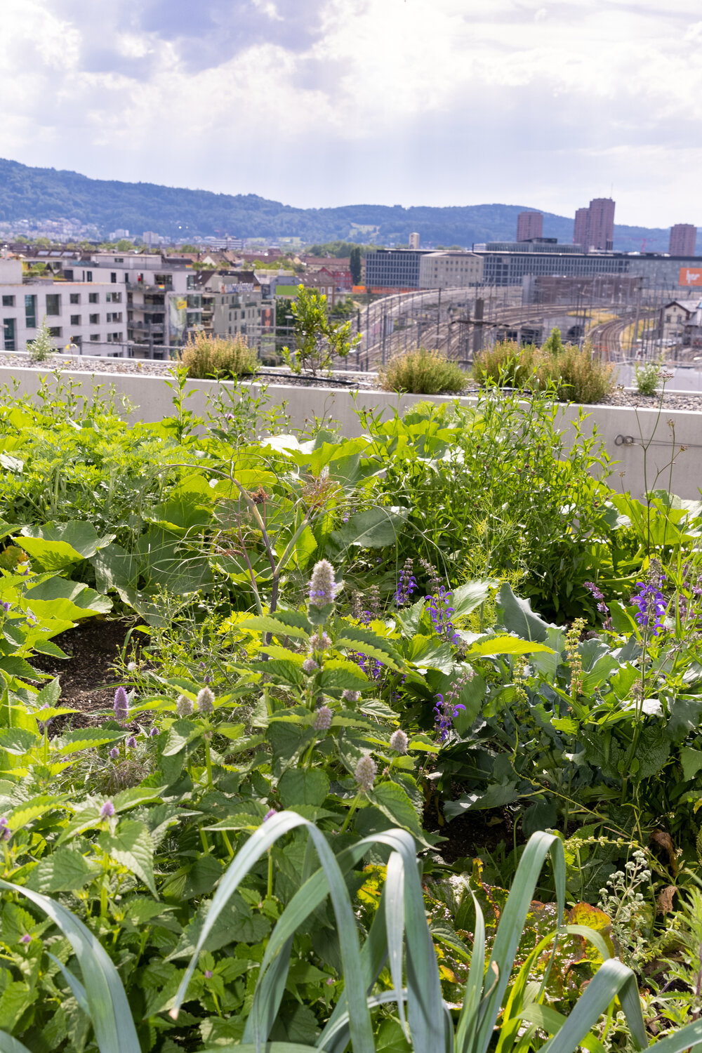 Im Rahmen des genossenschaftlichen Wohn- und Gewerbeprojekts Zollhaus im Zürcher Langstrassenquartier wurden die Dachflächen als vielfältige Freiräume mit hoher ökologischer Qualität gestaltet. Die Dachterrassen sind mit einer Mischung aus standortangepassten Wildpflanzen wie Wildrosen, Ginster, Rosmarin und Thymian bepflanzt, die an die mediterrane Strauchvegetation erinnern. Zusätzlich wurden mobile Pflanzgefässe mit Maulbeerbäumen aufgestellt, die auf Schienen verschoben werden können – eine Hommage an die industrielle Vergangenheit des Standorts. Diese Gestaltung schafft nicht nur Aufenthaltsqualität für die Bewohner:innen, sondern bietet auch Lebensraum für Insekten und Vögel.​
