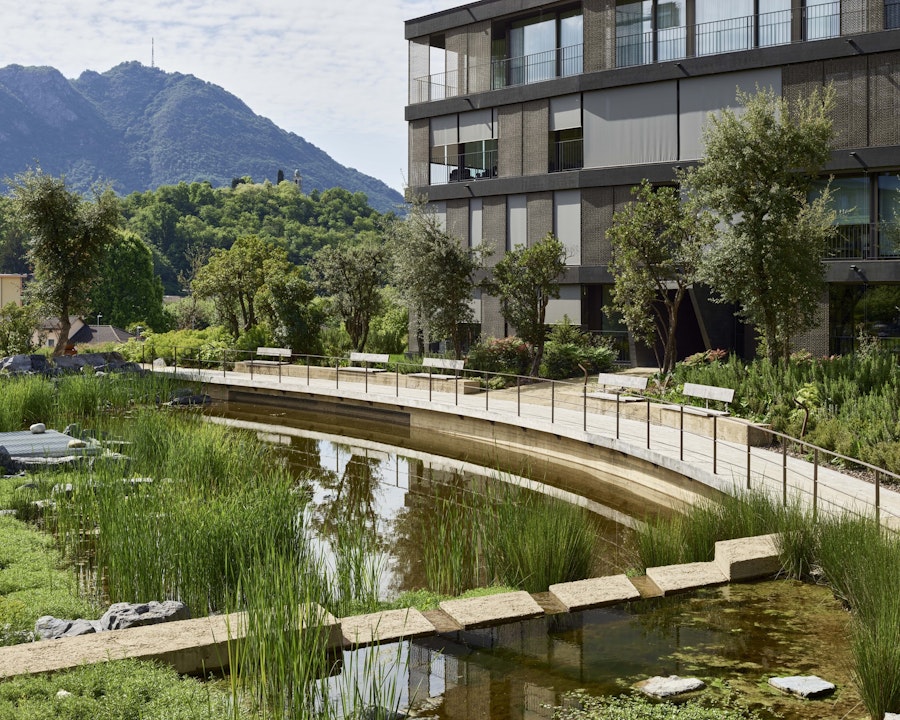 Ein Retentionsbecken in der Überbauung Parco Casarico in Sorengo (TI).© Igor Ponti