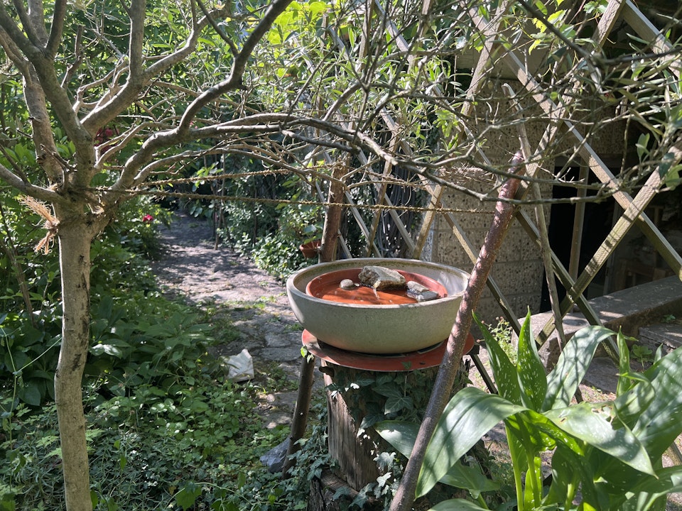 • In grösseren Gefässen dient ein grösserer Stein als Sitzplatz für Vögel – ideal zum Trinken oder Baden.